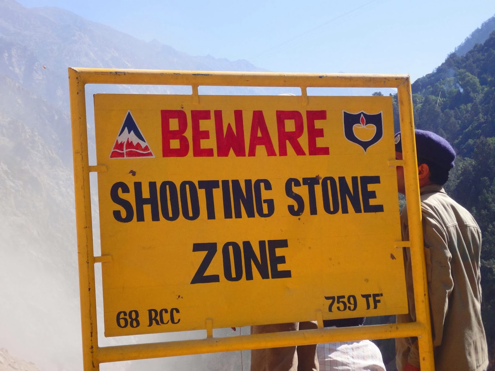 towards Pooh. Around 04 kms ahead of Powari we came across the rock slide area